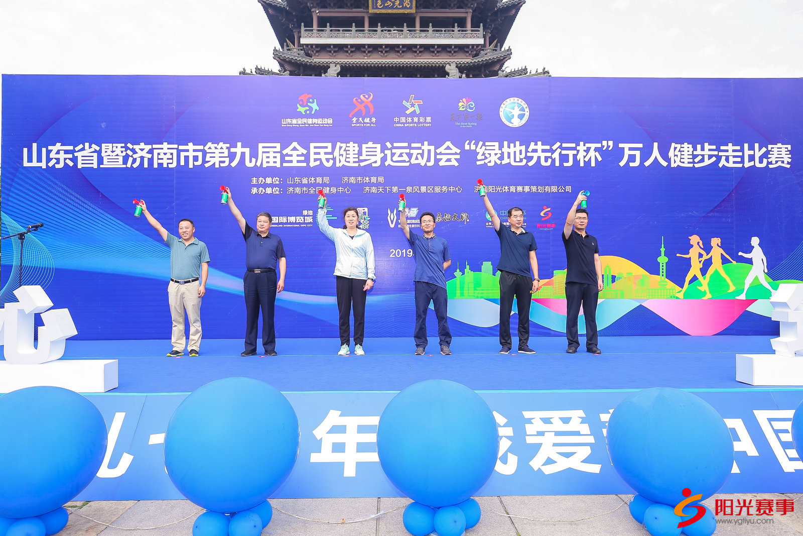 7月27日,山东省暨济南市第九届全民健身运动会“绿地先行杯”万人健步走比赛在美丽的大明湖畔成功举办。